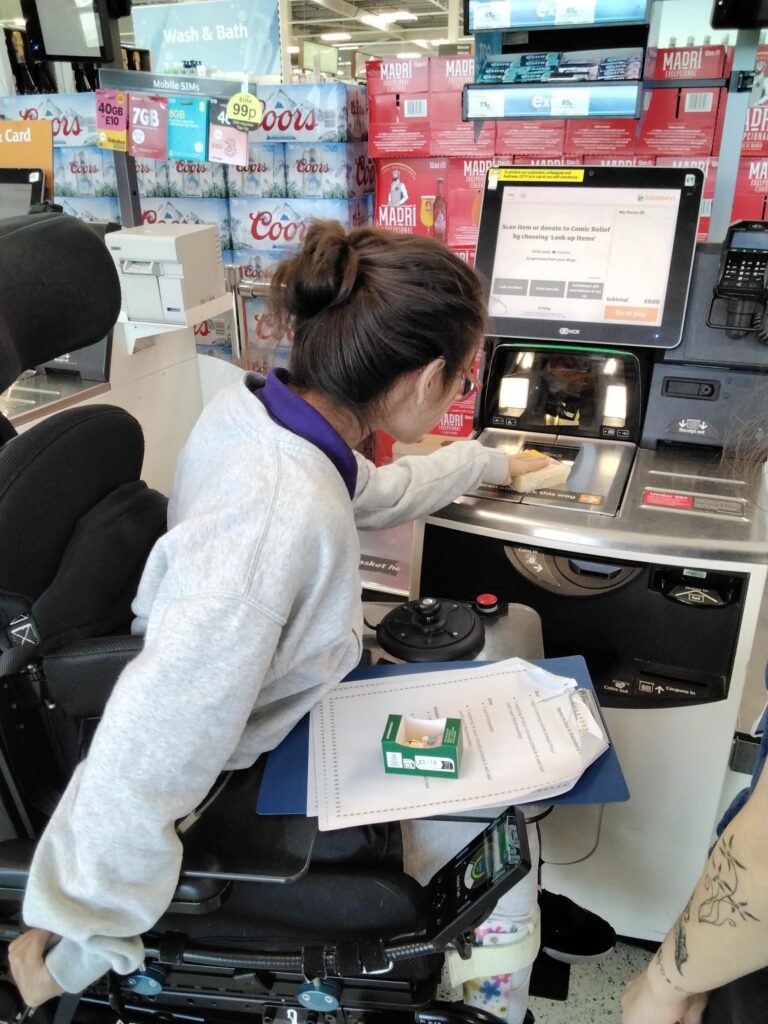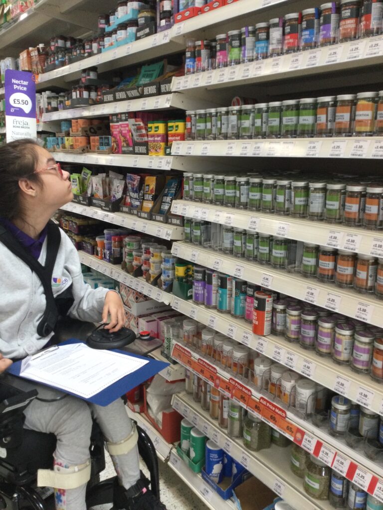 First we went to the supermarket to buy the ingredients for a pizza and a pasta dish, checking the prices and finding and choosing the items that we needed.